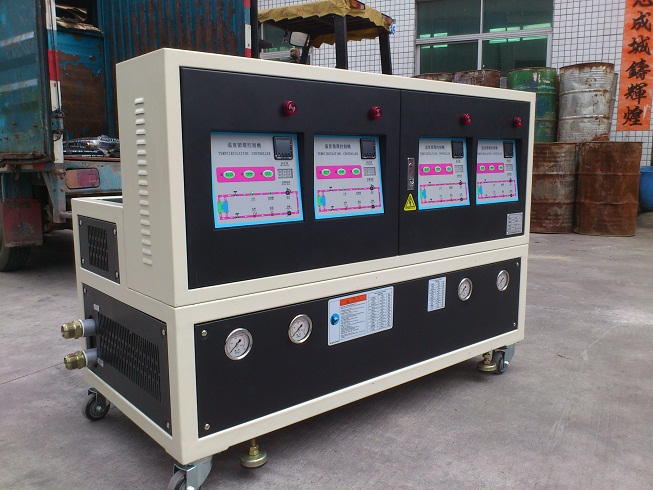 深圳奧蘭特機(jī)械為了讓水循環(huán)溫度控制機(jī)更好的應(yīng)用在擠出機(jī)行業(yè),針對(duì)一些擠出機(jī)(冷喂料擠出預(yù)成型機(jī)、四復(fù)合擠出機(jī)、橡膠齒輪泵擠出機(jī))等擠出機(jī)都有一個(gè)共同的特點(diǎn),都要多點(diǎn)控溫,而沒個(gè)點(diǎn)的溫度不同,根據(jù)這些需要,奧蘭特機(jī)械開發(fā)了多機(jī)一體水式模溫機(jī),四機(jī)一體模溫機(jī)來滿足擠出機(jī)行業(yè)的需要。